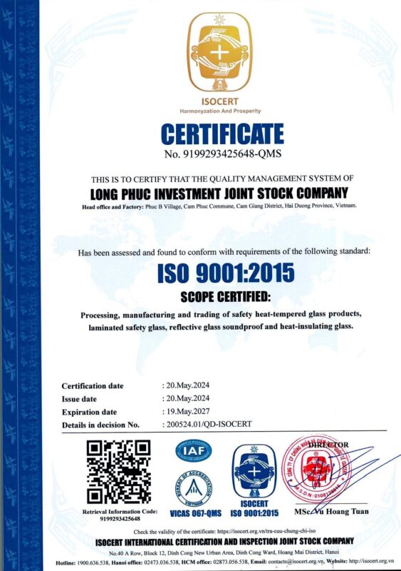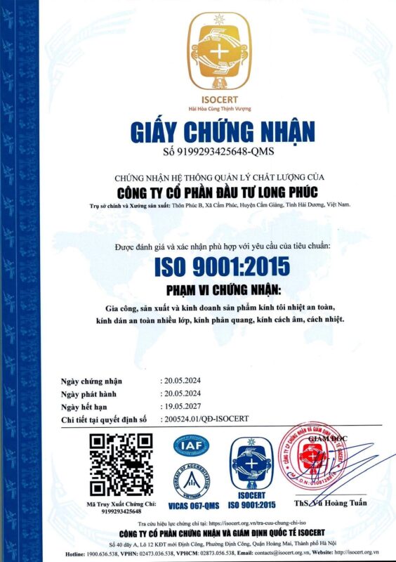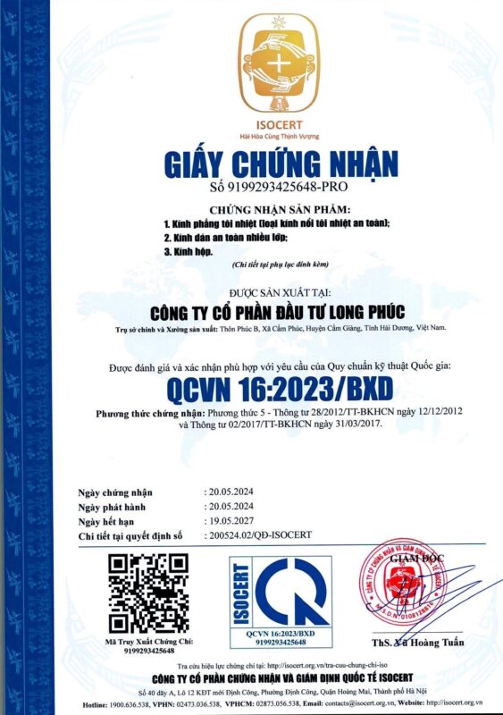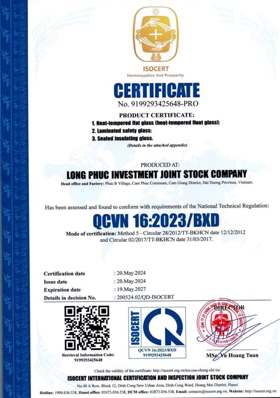 – QCVN: 16:2019/ BXD – Giấy chứng nhận hợp quy – Kính cường lực, kính dán
